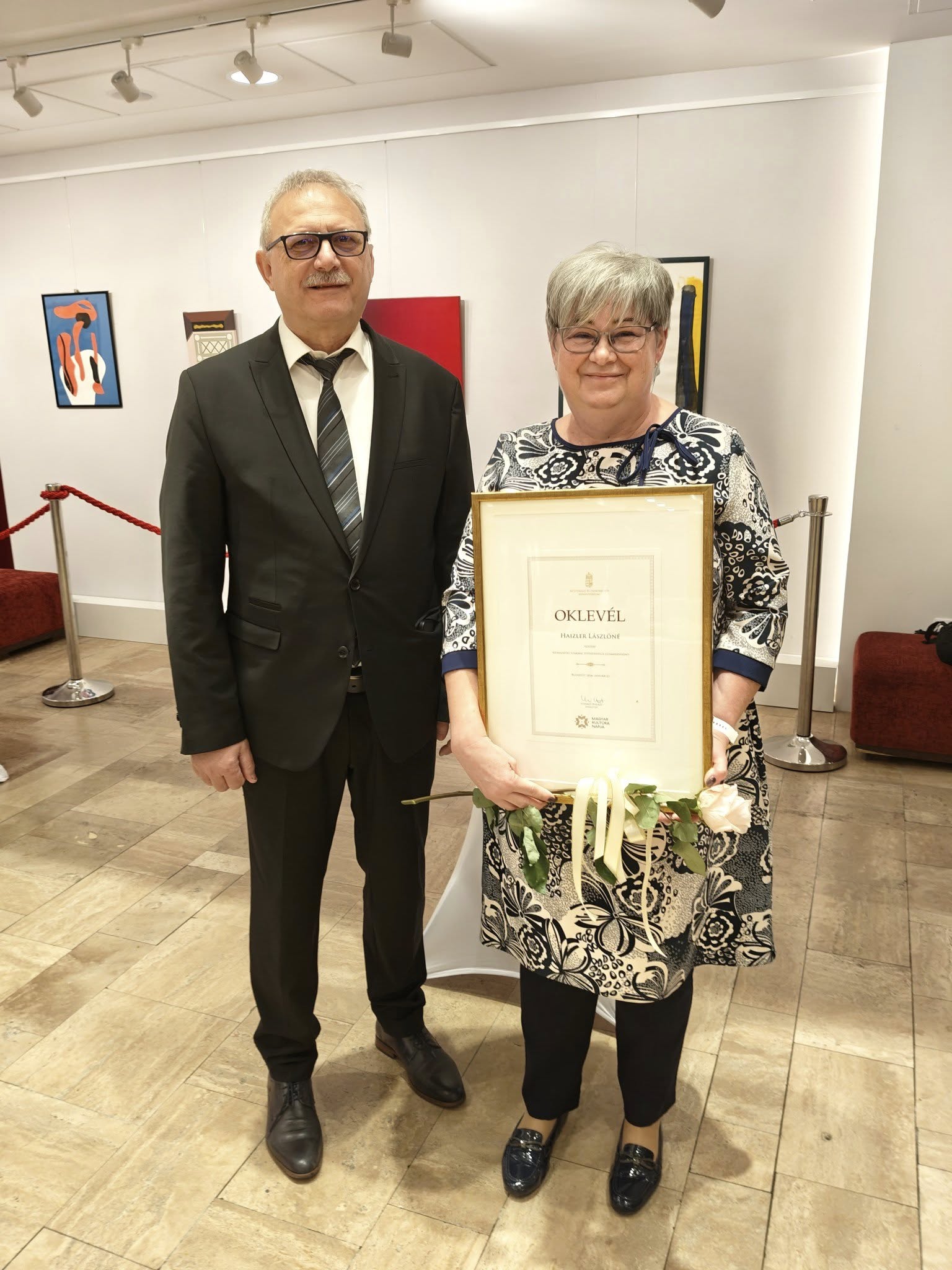 A Kulturális és Innovációs Minisztérium miniszteri elismerő oklevelét vehette át kollégánk, Haizler Lászlóné intézményvezető-helyettes, a Magyar Kultúra Napja alkalmából a Weöres Sándor Színházban rendezett díjátadó ünnepségen. Szívből gratulálunk neki!